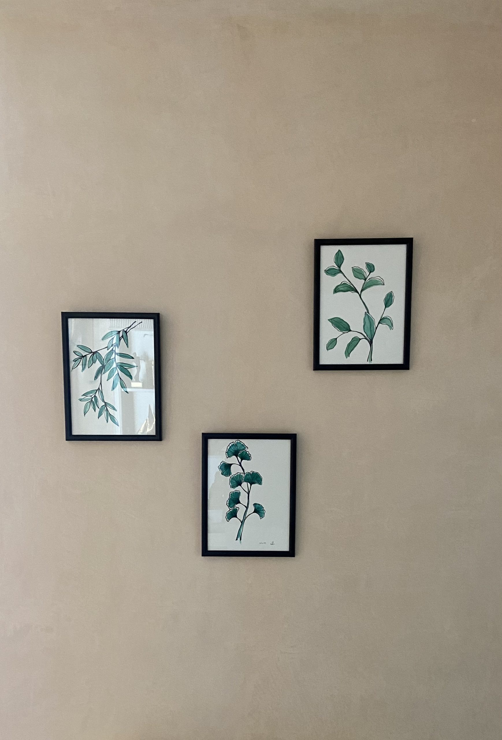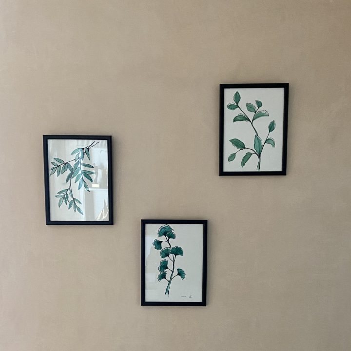 Buscamos reflejar un concepto natural y orgánico, que trasmitiese la sensación de un ambiente relajado y atemporal. Por eso elegimos mantener la pared con el trazo de la aplicación del yeso de revestimiento, pintando con un barniz protector para conservarlo y reflejar esa sensación tan orgánica y natural. Lo complementamos con muebles en madera natural y acabados cromados para las luminarias y unas láminas de acuarelas verdes que enmarcaban el concepto.